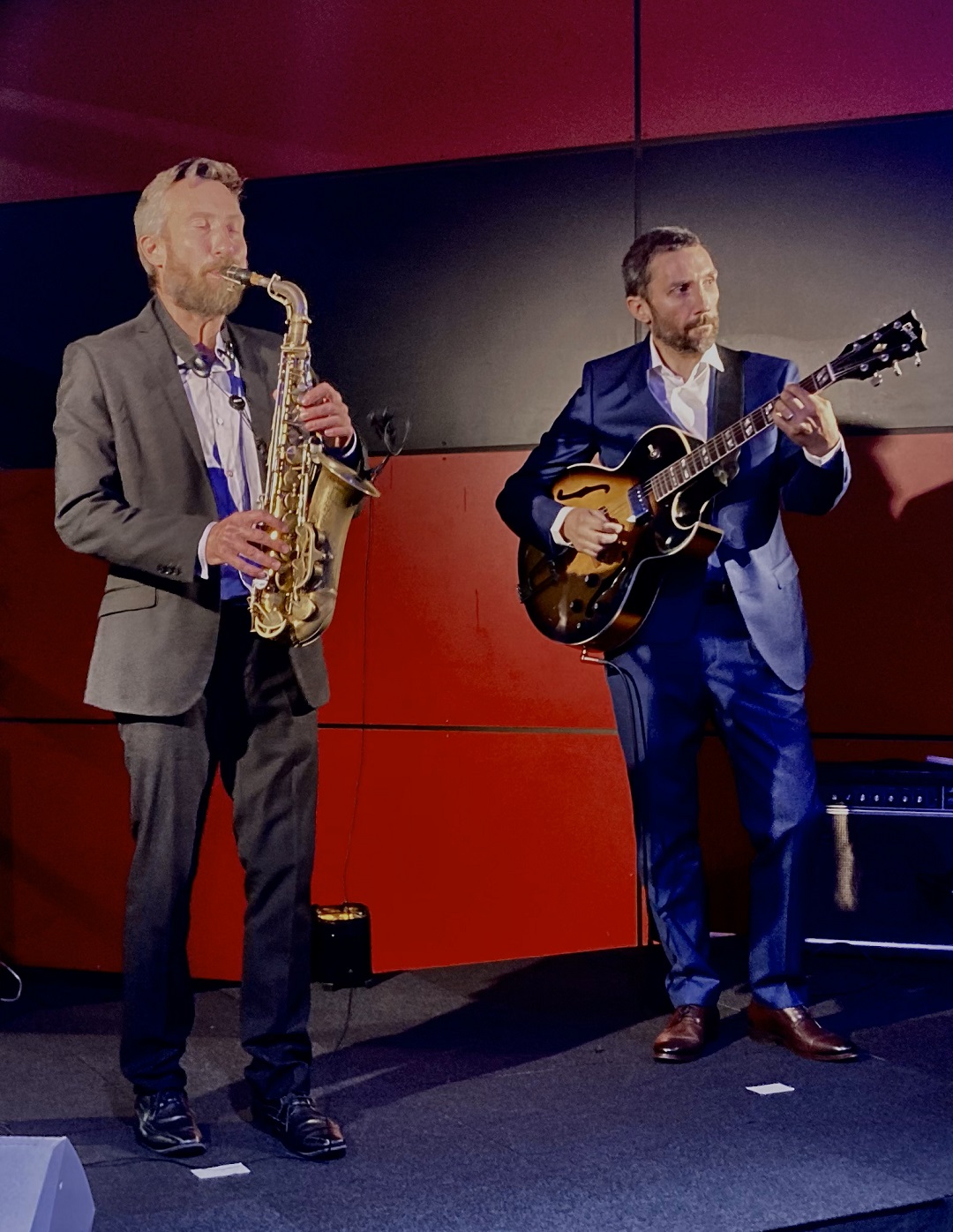 Greg Ivanoff et Olivier Calvet jouent ensemble depuis des années à travers divers projets : ZIRC 4tet, Calvet/Ivanoff group, Super 5tet, Jazz Alive, etc… Sur la même longueur d’onde musicalement et humainement, ils se retrouvaient régulièrement lors de sessions de travail. Ce n’est qu’en 2022 qu’ils se sont rendu à l’évidence du duo sax-guitare et ont relevé le défi de cette formule sans filet ni effets.